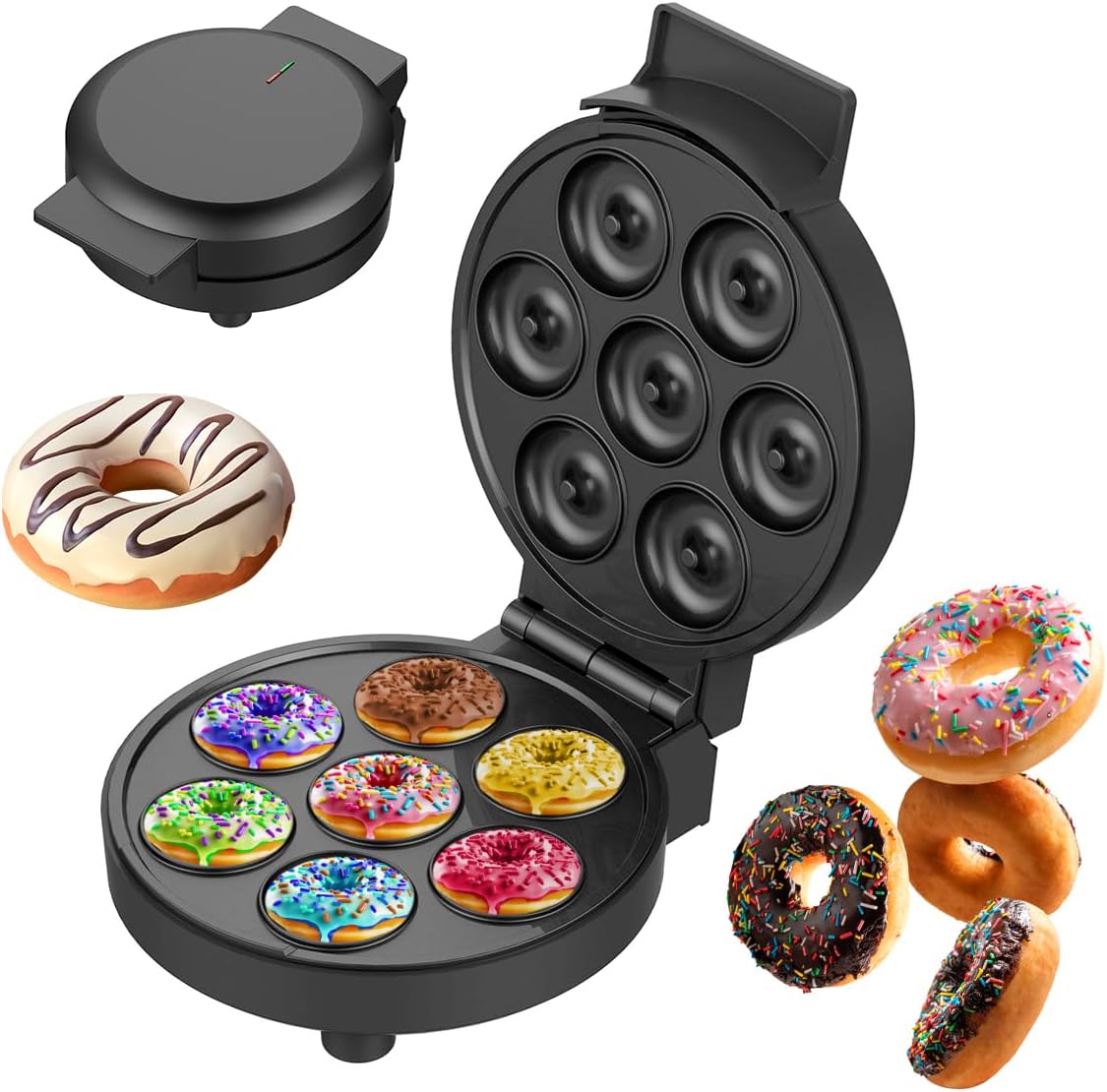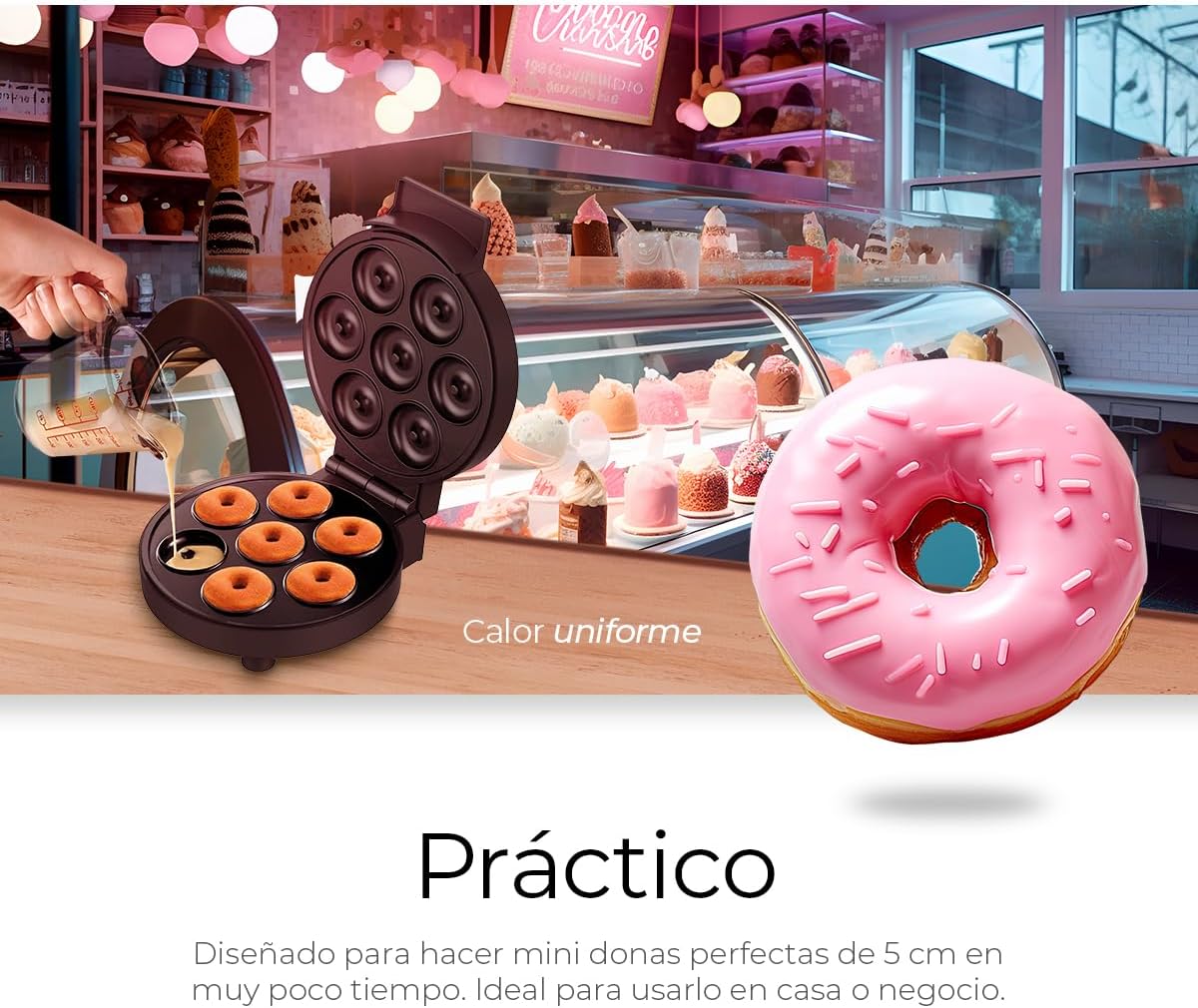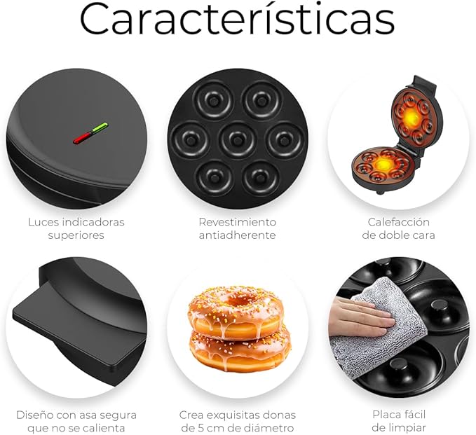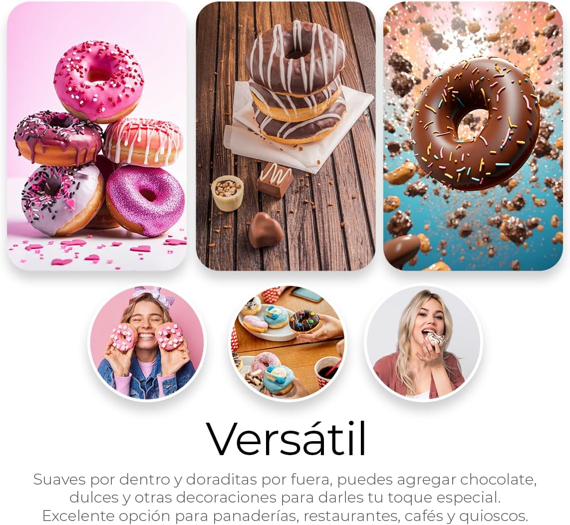 Máquina eléctrica para mini donas diseñada para preparar varias piezas de forma rápida y uniforme. Es compacta, de fácil limpieza y cocción eficiente, ideal para hogar, reuniones o pequeños emprendimientos. Permite obtener resultados consistentes con uso sencillo y práctico.